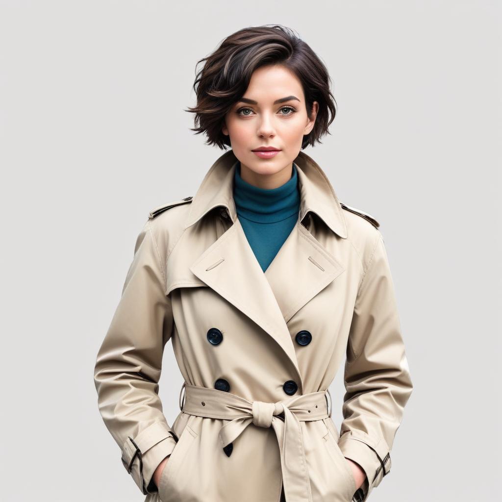 Stylish woman wearing a trench coat in a neutral setting
