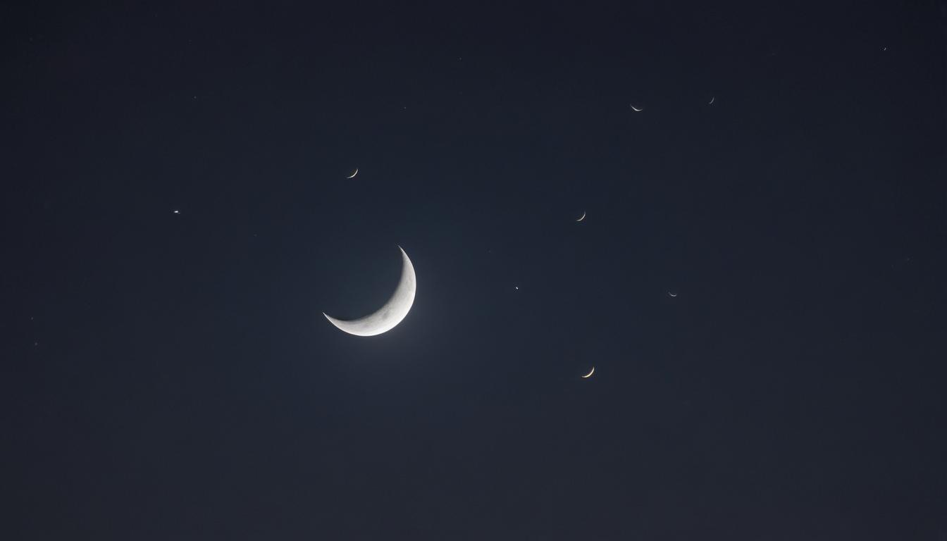 Crescent moon shining in a dark night sky