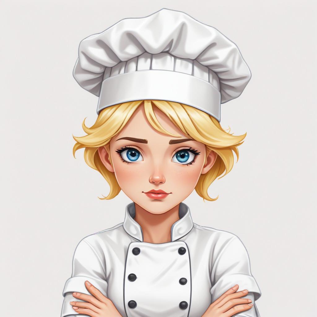 attire, blonde, chef, chef coat, chef hat, confident, cook, cooking, culinary, determined, expression, female, food, hospitality, kitchen, passion, professional, restaurant, skills, young