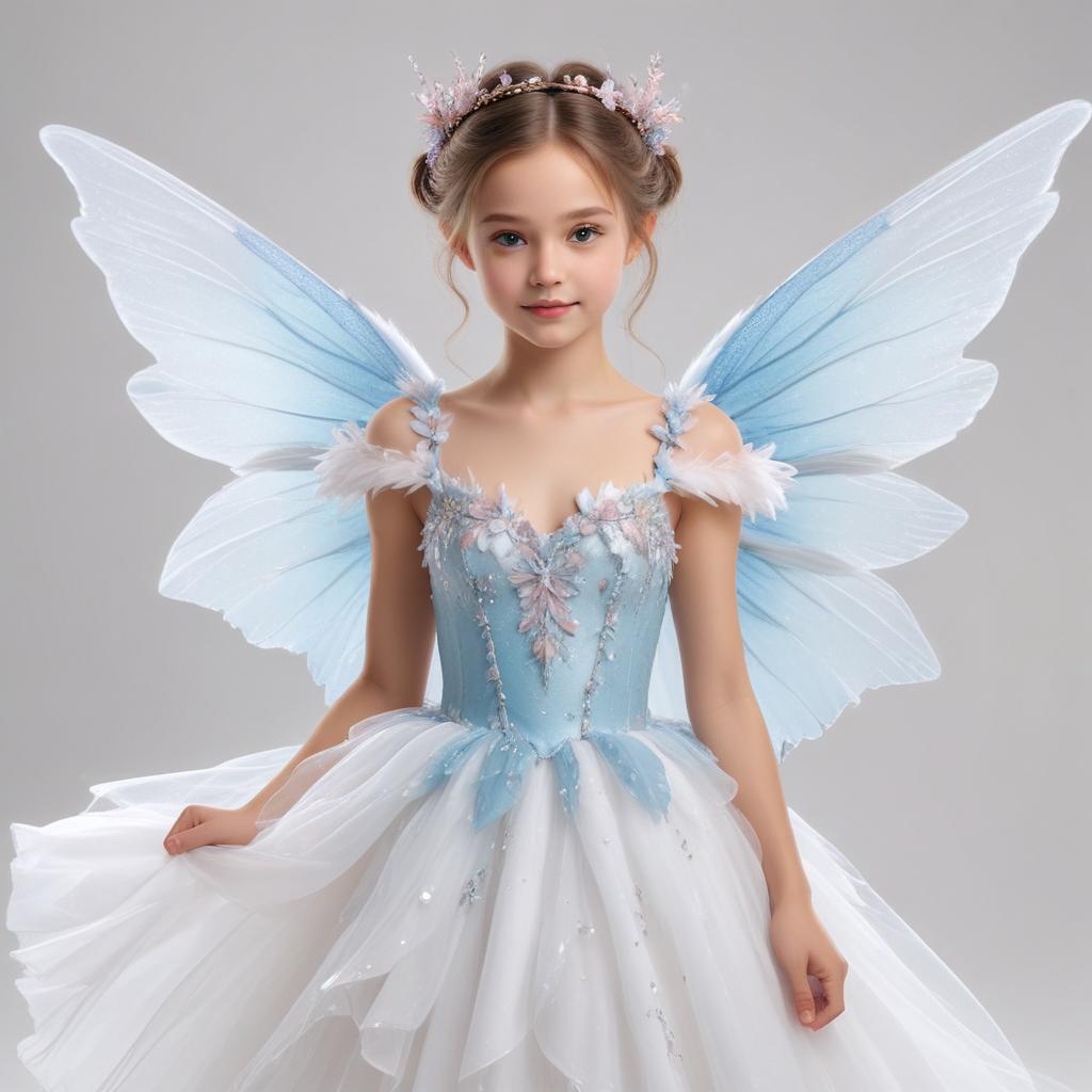 accessories, beauty, blue, butterfly wings, childhood, costume, creative, cute, dress, elegance, fairy, fantasy, fun, girl, magical, playful, portrait, studio, whimsical, white
