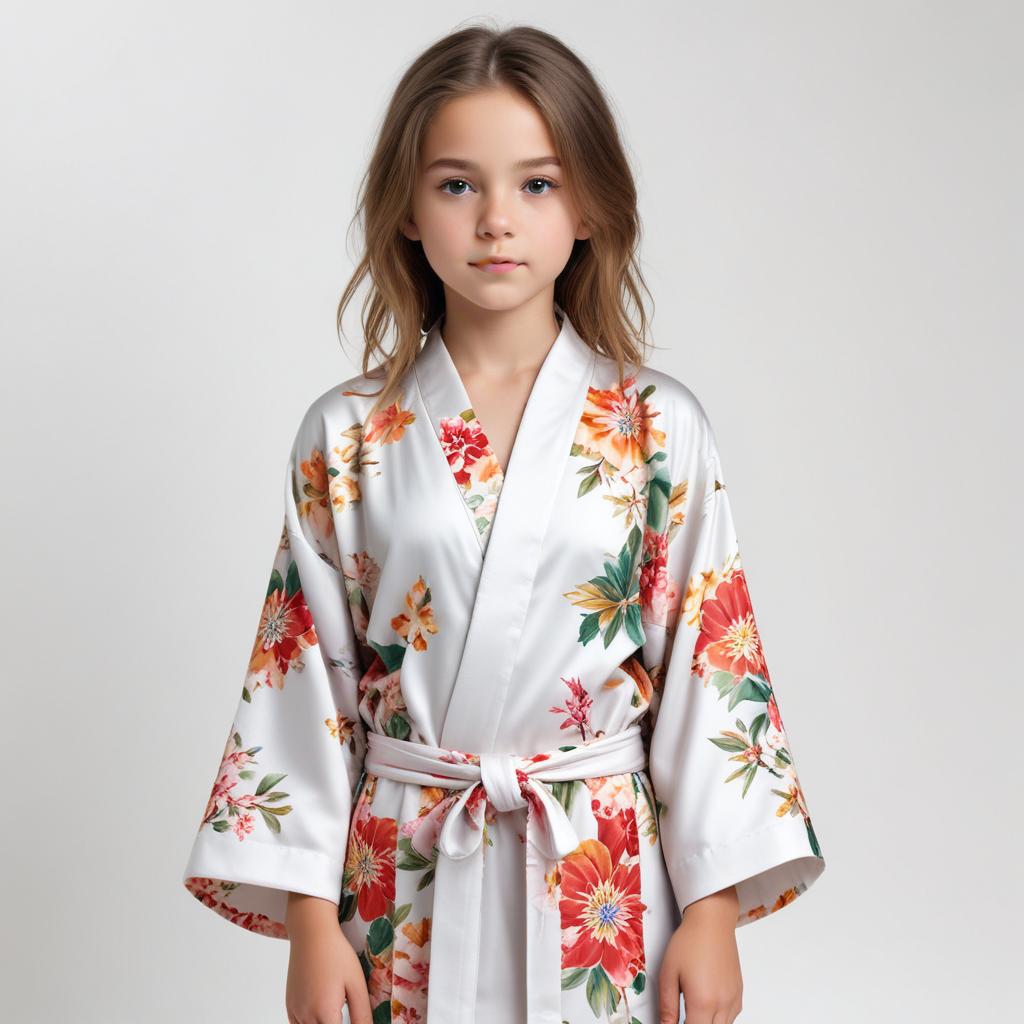 beauty, child, clothing, design, dress, elegant, fabric, fashion, floral, flowers, girl, kimono, nature, patterns, portrait, serious, standing, textiles, traditional, white
