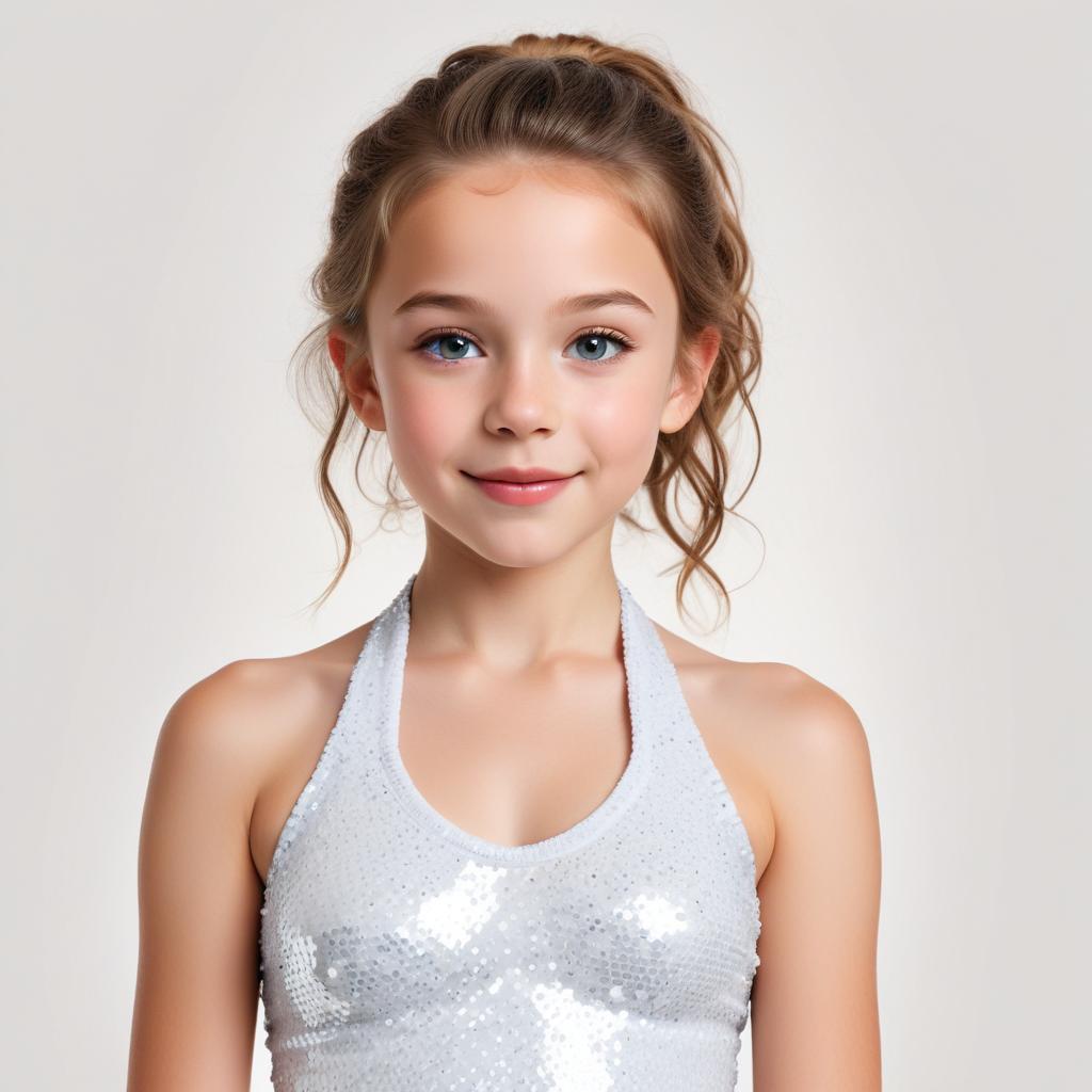 Young girl in sparkling outfit poses