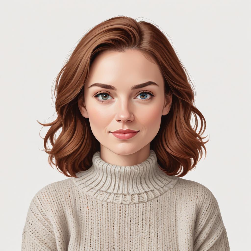 A young woman with shoulder-length brown hair poses in a light beige sweater. She has a friendly expression, set against a neutral background.