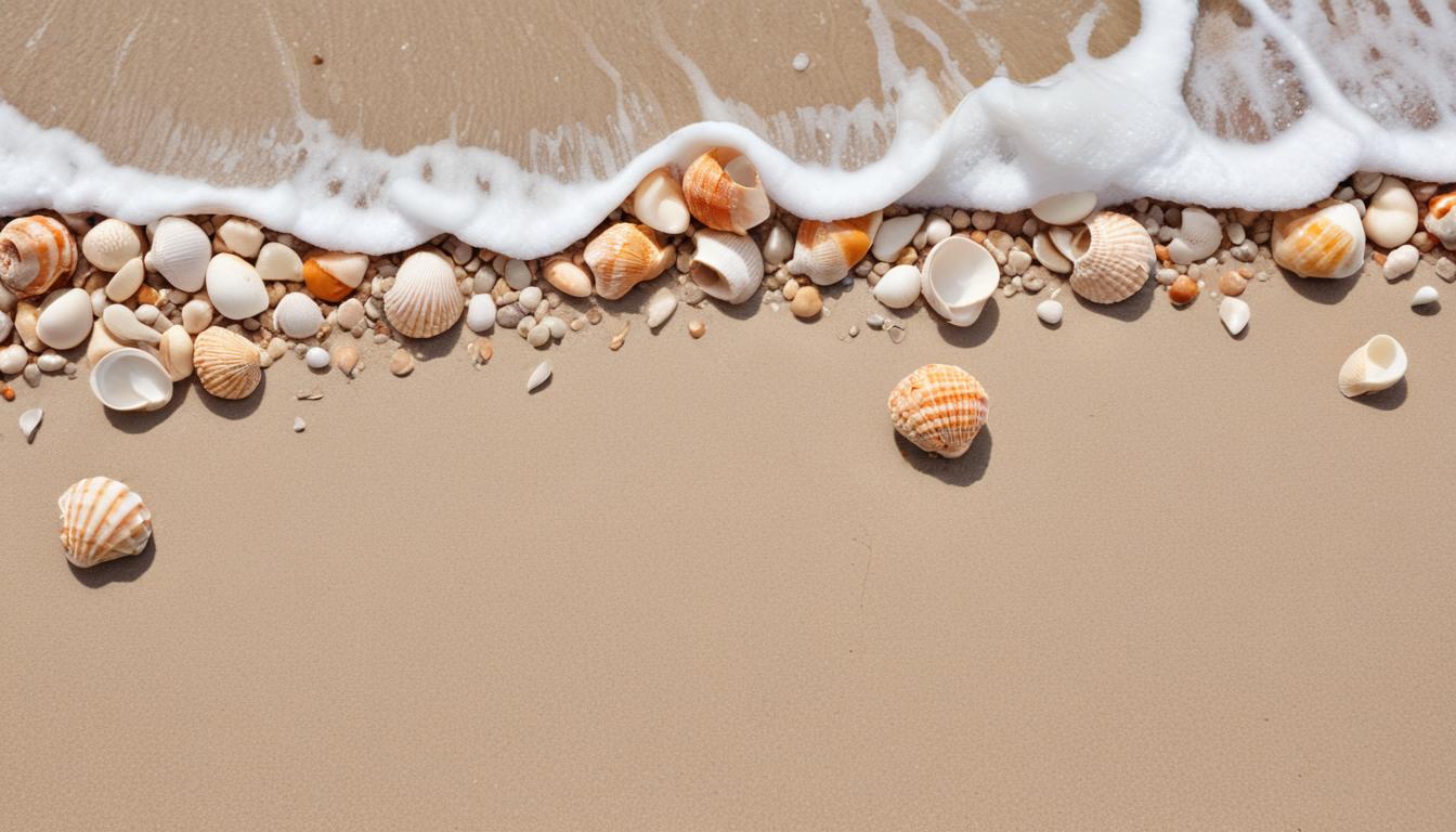 Seashells on sandy beach shore