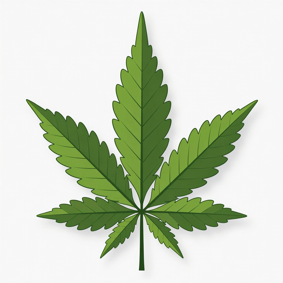 A detailed illustration of a green cannabis leaf showcasing its distinct shape and texture, set against a plain background.