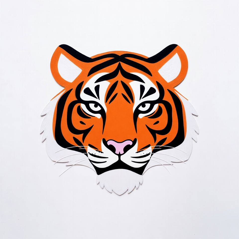 Orange and black tiger head cutout showcases bold design. Detailed features bring this artwork to life, making it an eye-catching accent.