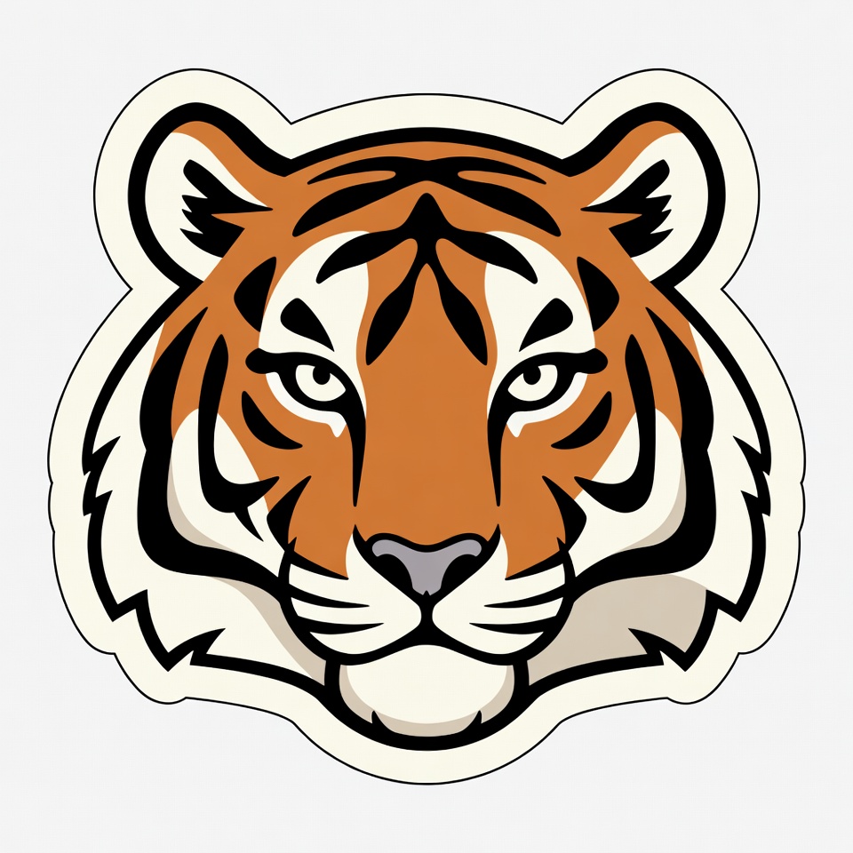 This artwork shows a strikingly detailed tiger's head, highlighting its features and vibrant colors in a versatile design.