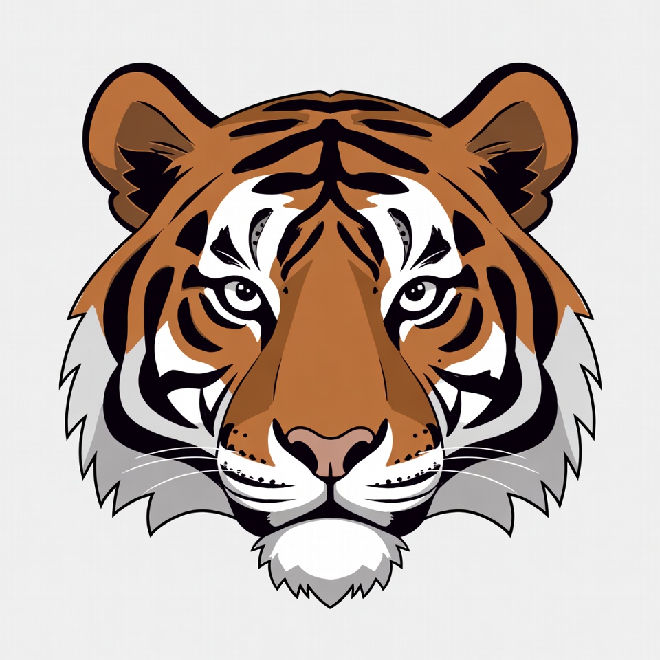 A striking illustration of a tiger's face showcases its fierce expression and distinctive markings, blending vibrant and bold colors effectively.