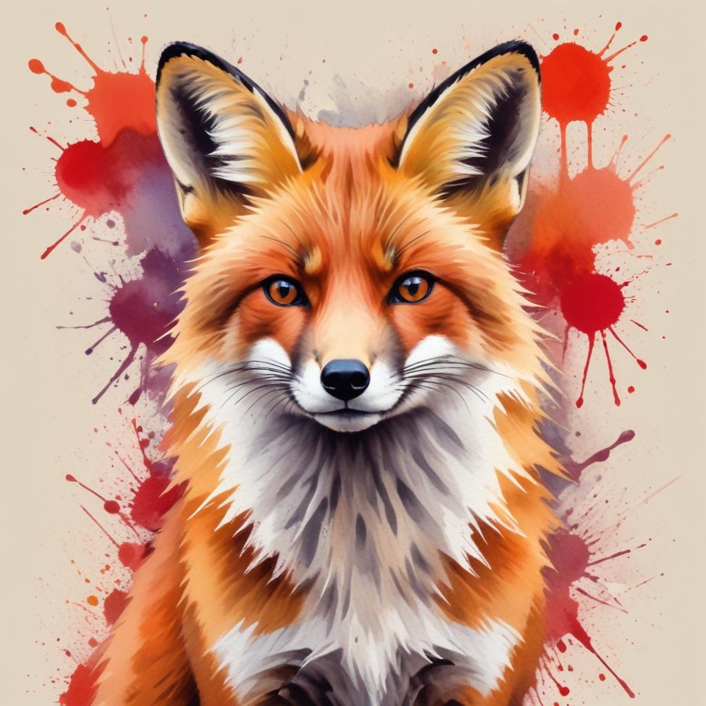 Vibrant fox illustration with splashes