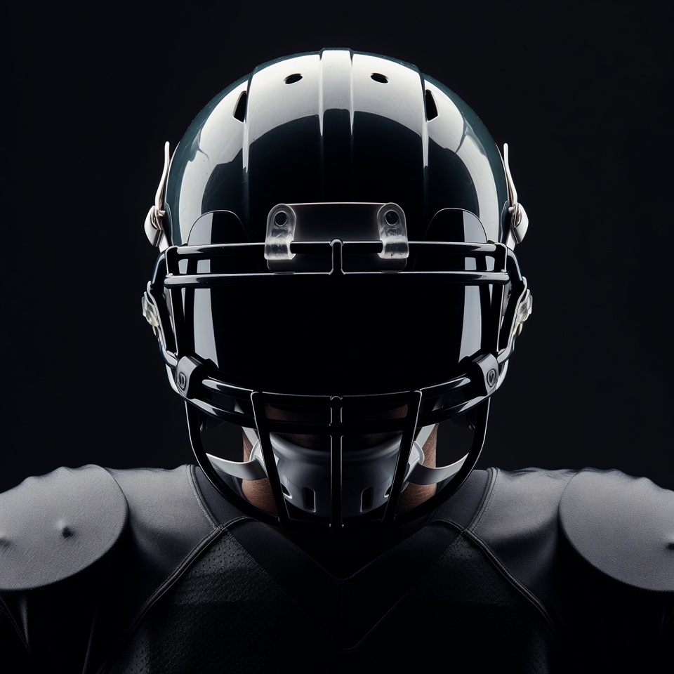 action, adrenaline, athlete, competition, dark, design, equipment, football, game, gear, helmet, intensity, modern, performance, player, protection, safety, silhouette, sport, training
