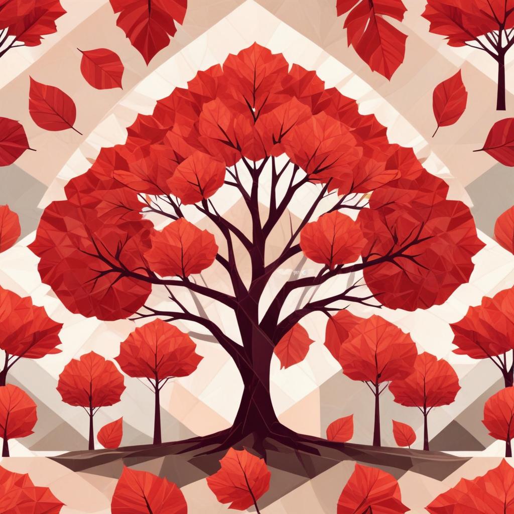 art, autumn, background, color, creative, design, fall, foliage, forest, geometric, illustration, landscape, leaves, nature, outdoors, pattern, red, seasonal, stylized, trees