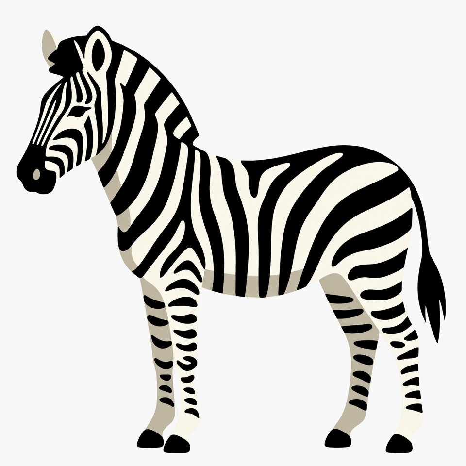 A zebra is shown standing upright, displaying its unique black and white stripes in a simplified, artistic style.