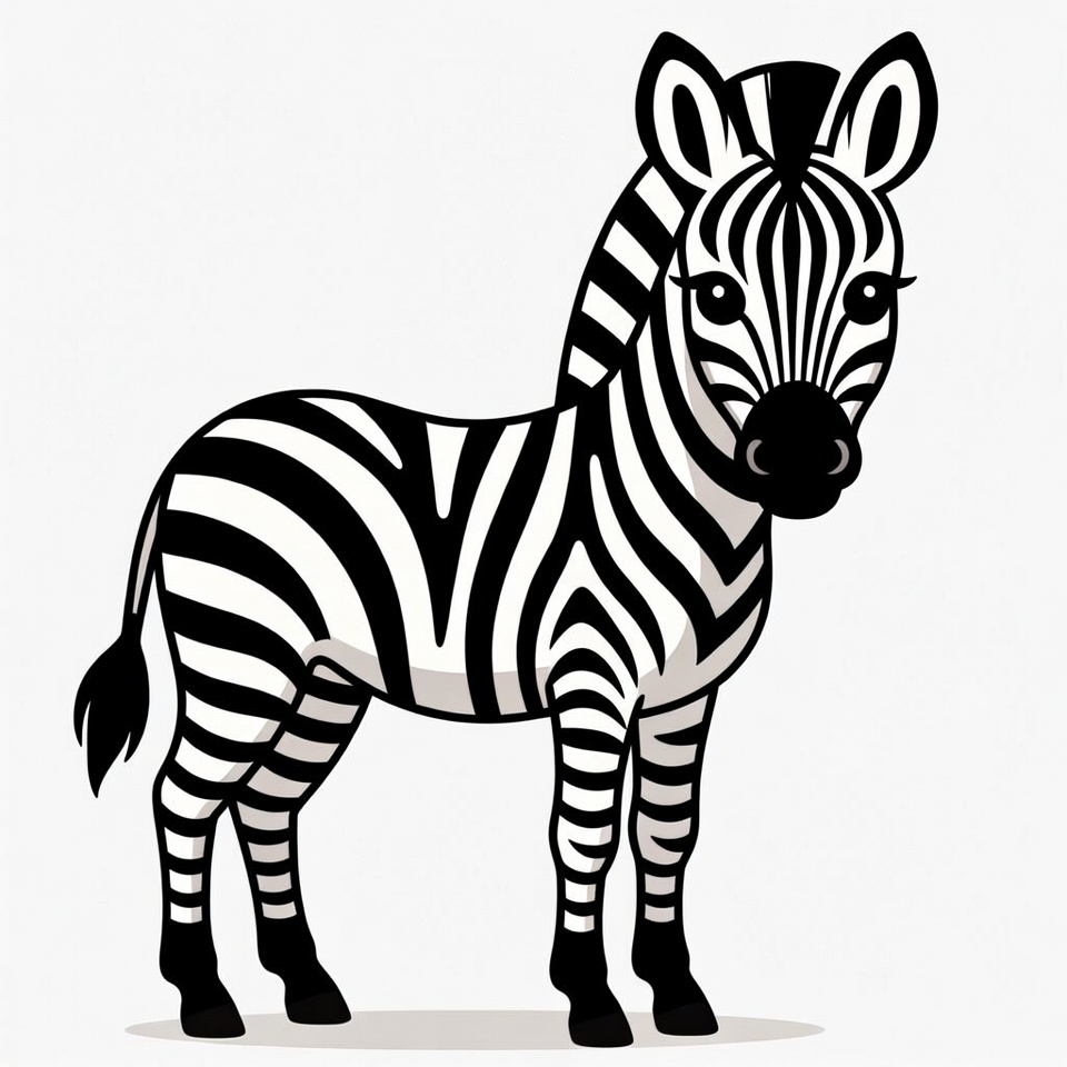 A cartoon zebra standing proudly with distinct black and white stripes. The zebra has friendly eyes and a cheerful expression.