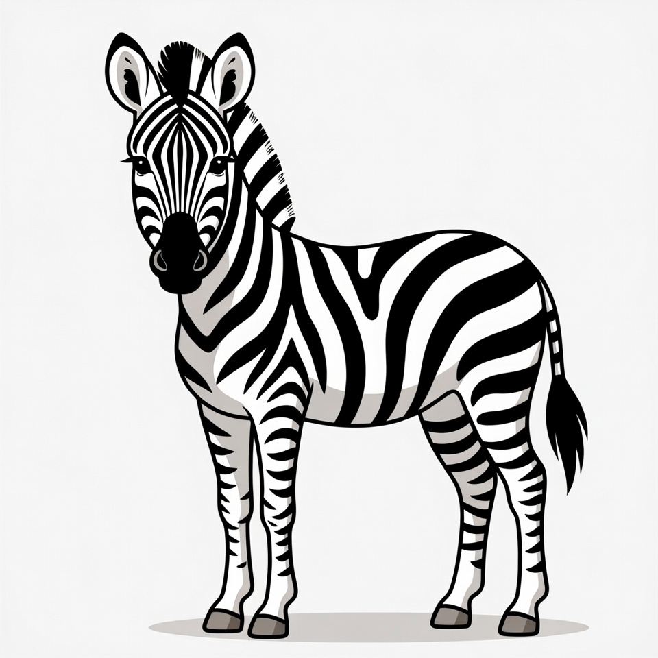 A cartoon zebra with striking black and white stripes stands upright, showcasing its playful and whimsical design.