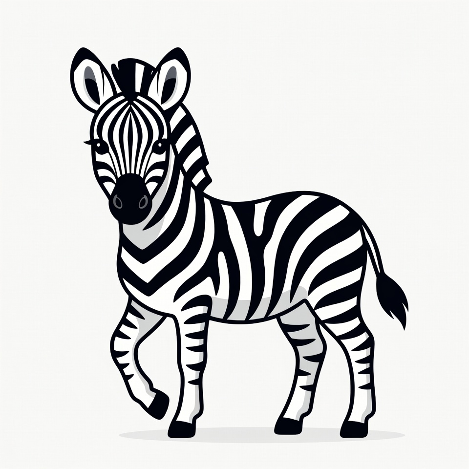 animal, cartoon, character, cheerful, cute, design, equine, fun, graphic, hoofed, illustration, nature, outline, playful, standing, stripes, whimsical, wildlife, young, zebra