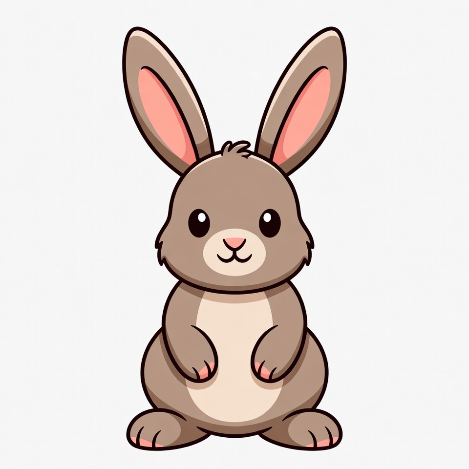 A friendly brown rabbit with long ears and a soft coat stands upright. The character has a happy expression and looks inviting.