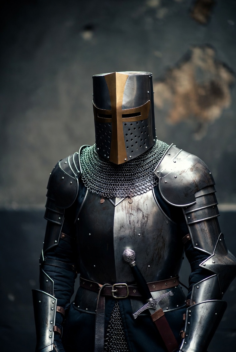 Knight in armor posing confidently