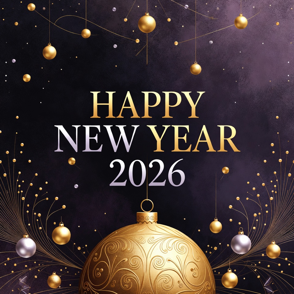 Golden decorations and vibrant colors create a festive atmosphere, welcoming the new year with joy and hope for 2026.