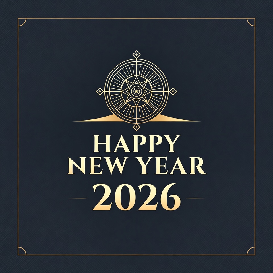 A stylish design featuring Happy New Year 2026 and a compass motif, perfect for welcoming the new year with elegance and joy.