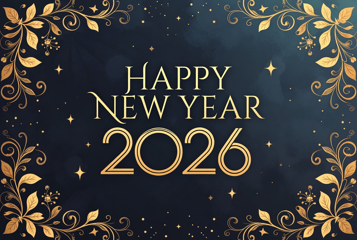 2026, celebration, celebration card, countdown, dark background, decoration, decorative, elegant, event, festive, festivities, floral design, gold, greeting, holiday, joy, new year, party, typography, wishes