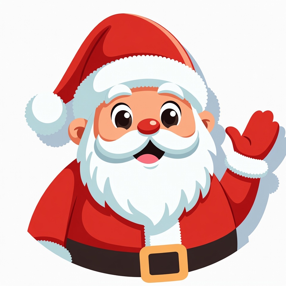 A cheerful Santa Claus, wearing his iconic red suit and hat, waves with a friendly smile, spreading holiday joy.