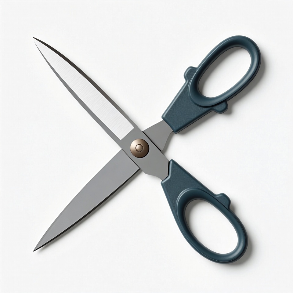 A pair of sharp scissors rests on a clean white surface, ready for cutting various materials and completing crafts or tasks.