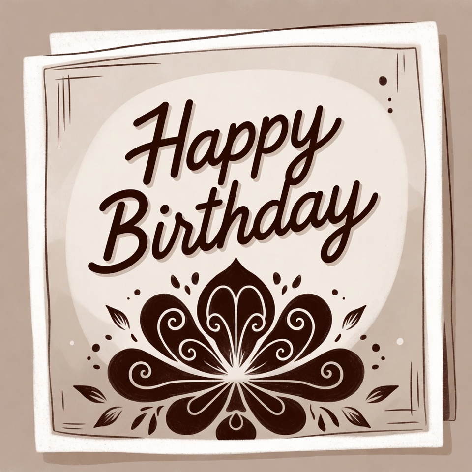A beautiful birthday card displays the words Happy Birthday with intricate floral patterns, perfect for celebrating a special day.