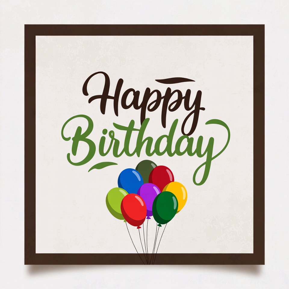 Festive birthday message featuring colorful balloons and cheerful lettering on a light background. Perfect for celebrations and parties.