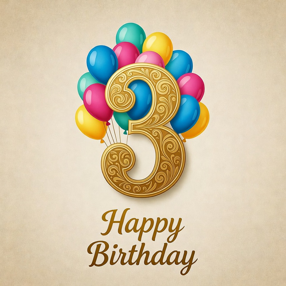 age three, art, balloons, birthday, celebration, cheerful, children, colorful, decoration, design, event, festive, festive colors, fun, greeting, happiness, happy, joyful, number three, party