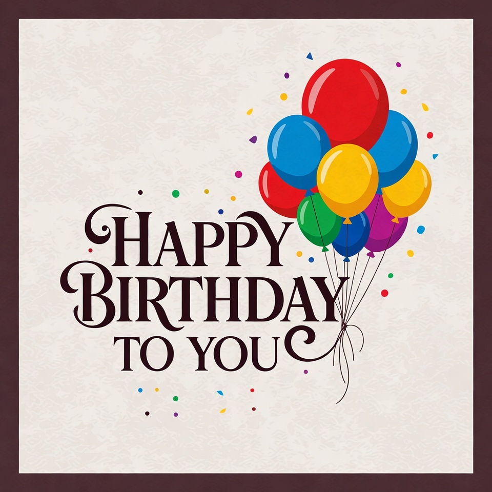 Bright balloons in various colors float above the cheerful birthday message, creating a festive atmosphere perfect for a celebration.