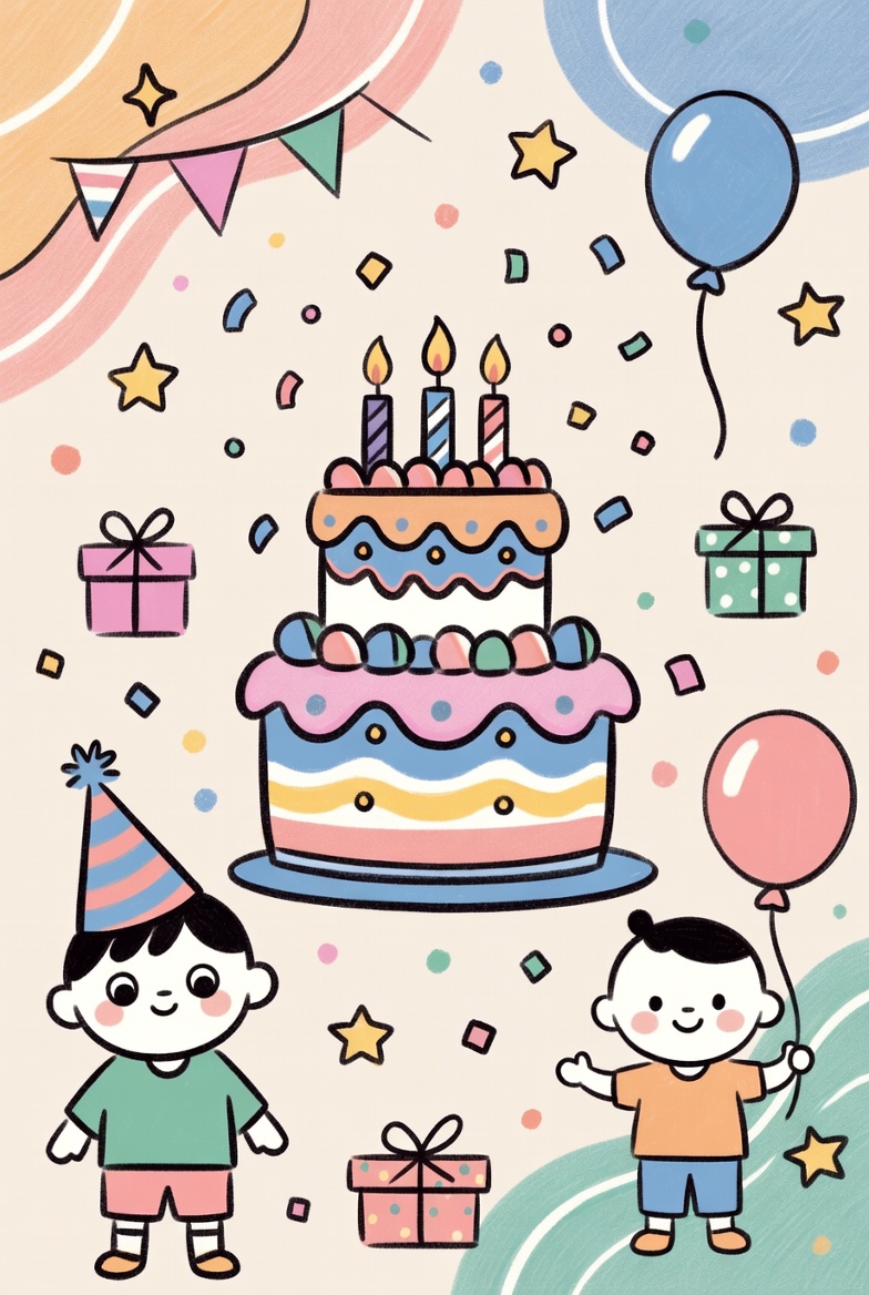 balloons, birthday, cake, cartoon, celebration, celebration items, children, colorful, confetti, decorations, event, festive, festive atmosphere, fun, gifts, happiness, joy, kids, party, sweets