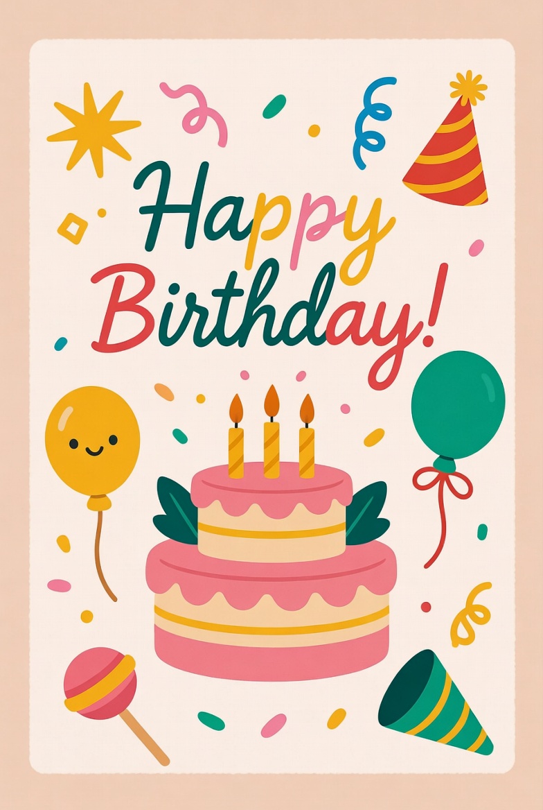 balloons, birthday, cake, cake design, candles, celebration, celebration items, cheerful, colors, confetti, decoration, design elements, event, festive, happy, joyful, lollipop, party, party hats, sweets
