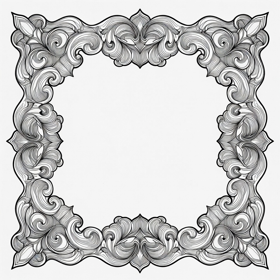 art display, artwork presentation, classic design, craftsmanship, creativity, decorative frame, design template, detailed outline, elegant frame, embellishment, empty space, graphic element, hand-drawn, intricate design, line art, motif, ornate details, stylish frame, swirling patterns, vintage style