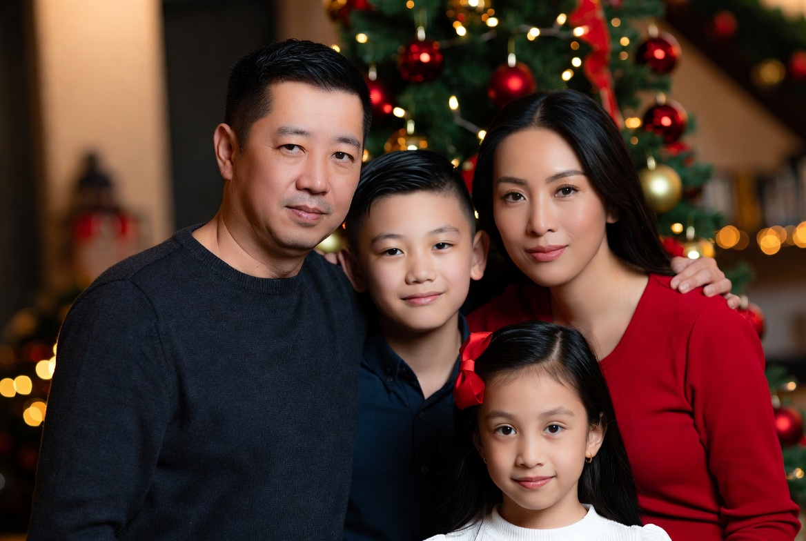 A family poses together in front of a decorated Christmas tree, capturing the joy of the holiday season and making cherished memories.