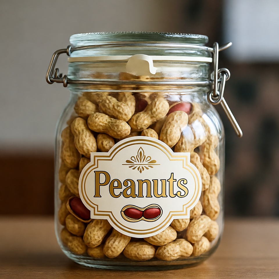 Freshly filled glass jar of peanuts