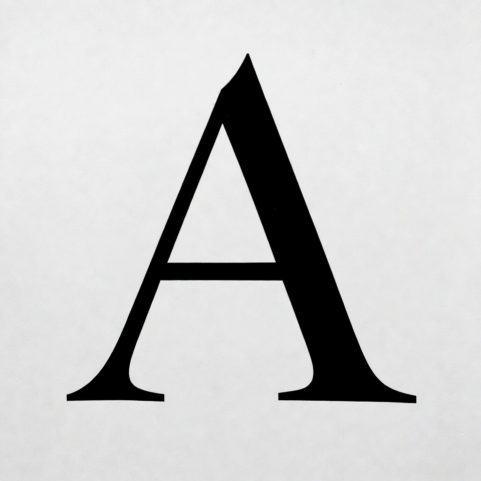 A large, bold letter A stands prominently against a plain white background. The design focuses purely on typography.