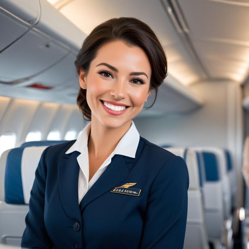 aircraft, airline interior, airline staff, airplane cabin, aviation, crew member, customer service, flight attendant, friendly, hospitality, in-flight, journey, passenger experience, professionalism, seated passengers, service, smiling, smiling face, travel, uniform