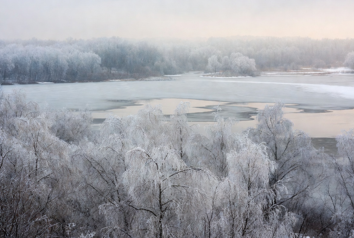 atmospheric, beauty, cold, forest, frozen, horizon, ice, lake, landscape, mist, nature, reflection, season, serene, snow, tranquility, trees, water, wildlife, winter