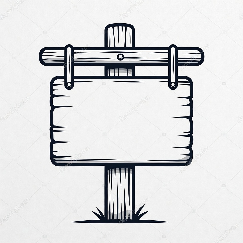 A rustic wooden signpost stands in a grassy area, ready for messages or directions, surrounded by a peaceful outdoor setting.