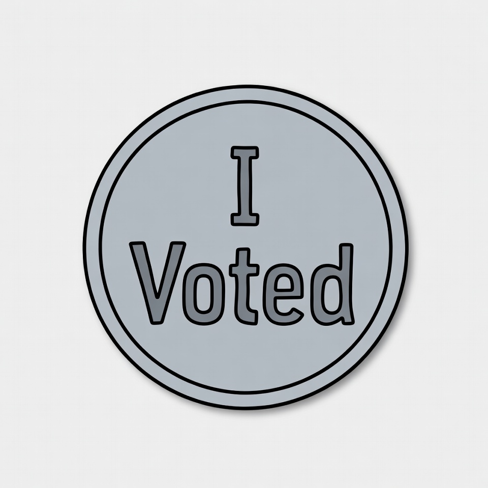 A round badge displays the text I Voted in bold letters, emphasizing civic engagement during election time. Perfect for proud voters.