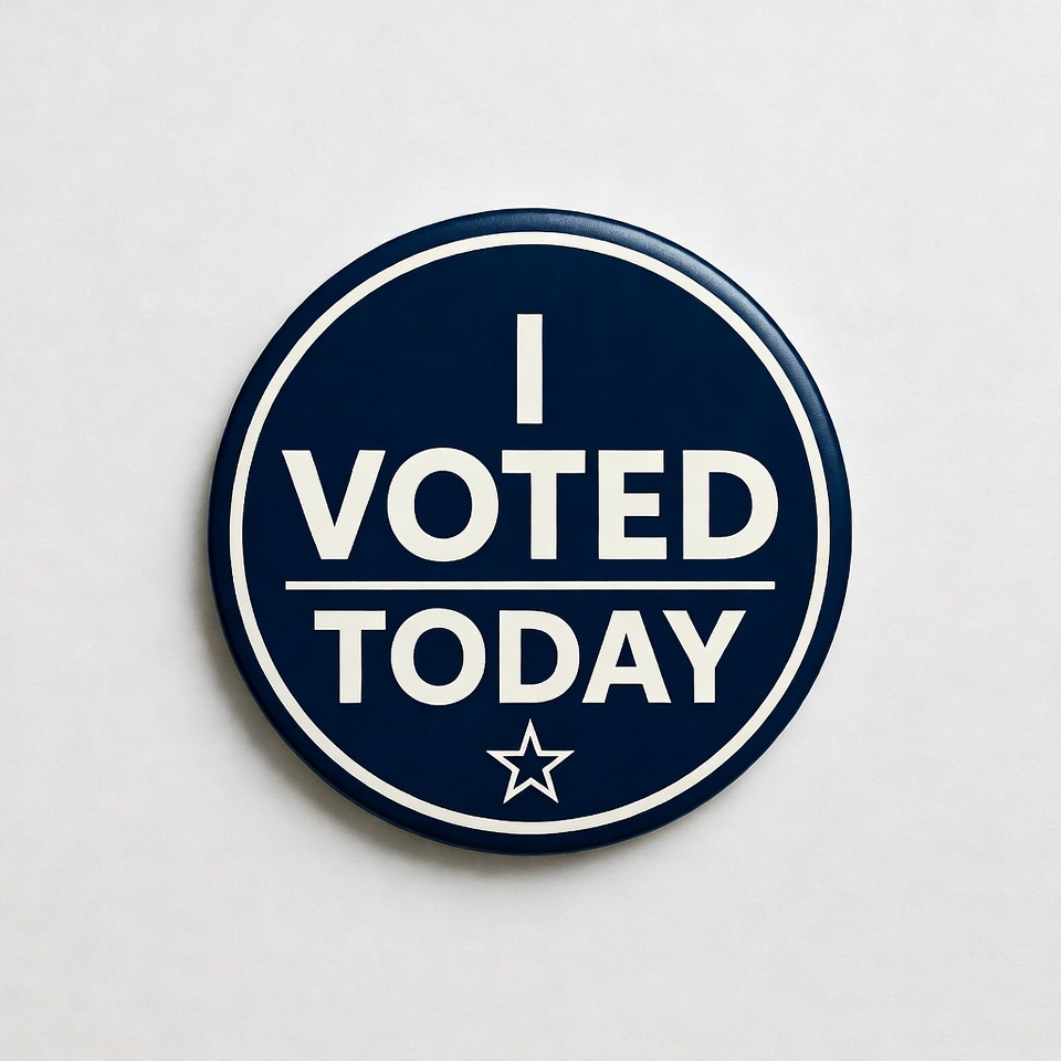A navy button displays the words I Voted Today, symbolizing participation in democracy and encouraging civic engagement among citizens.