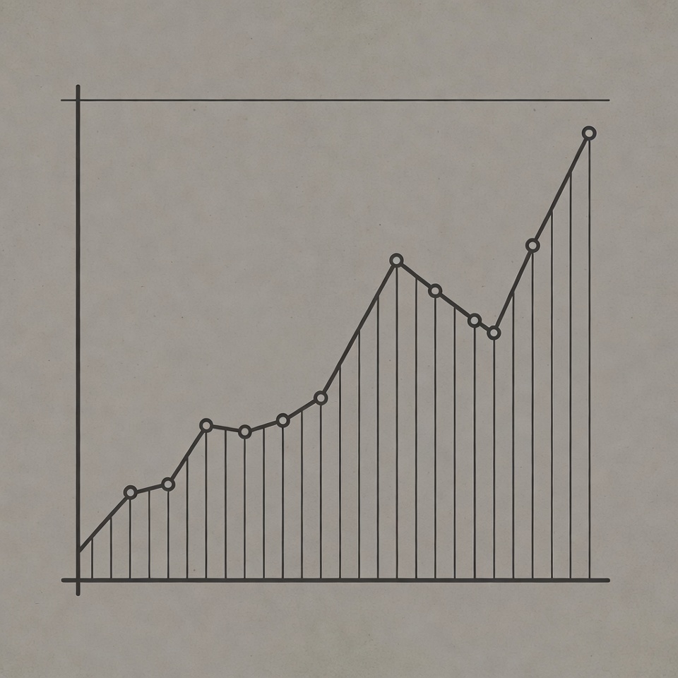 A line graph displays data increasing over time, marked by points and vertical lines. This visual represents a clear upward trend in values.