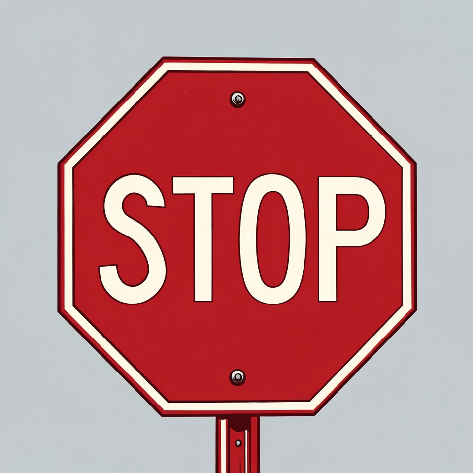 A red octagonal stop sign is prominently displayed against a plain gray sky, emphasizing its importance for road safety and traffic control.