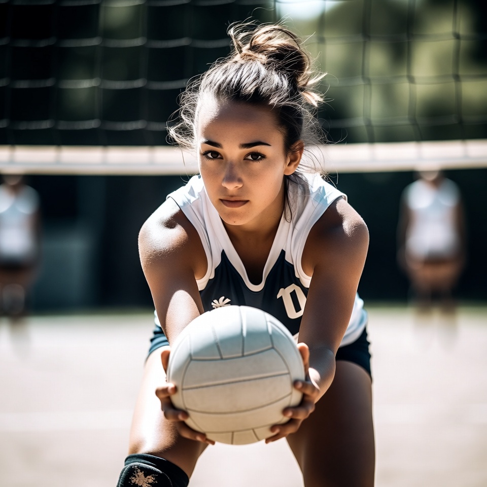 action, athlete, competition, court, determination, exercise, focus, game, girl, outdoor, physical activity, practice, serve, skill, sports, sunlight, teamwork, training, volleyball, youth sports