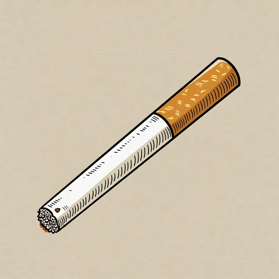 A single cigarette rests on a plain surface, showcasing its distinct white paper and brown filter, symbolizing smoking culture.
