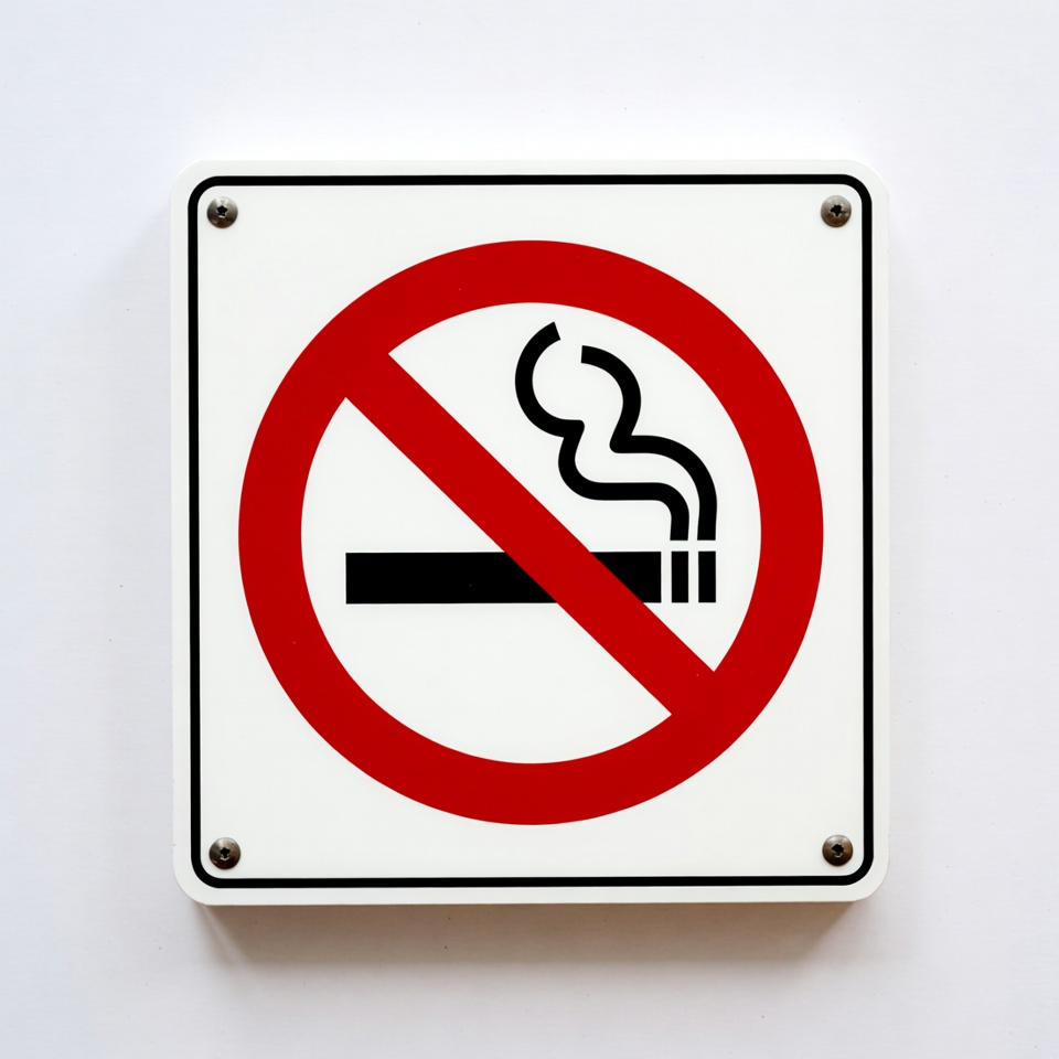 A no smoking sign displayed prominently on a white wall warns against smoking in the area, promoting a healthier environment.