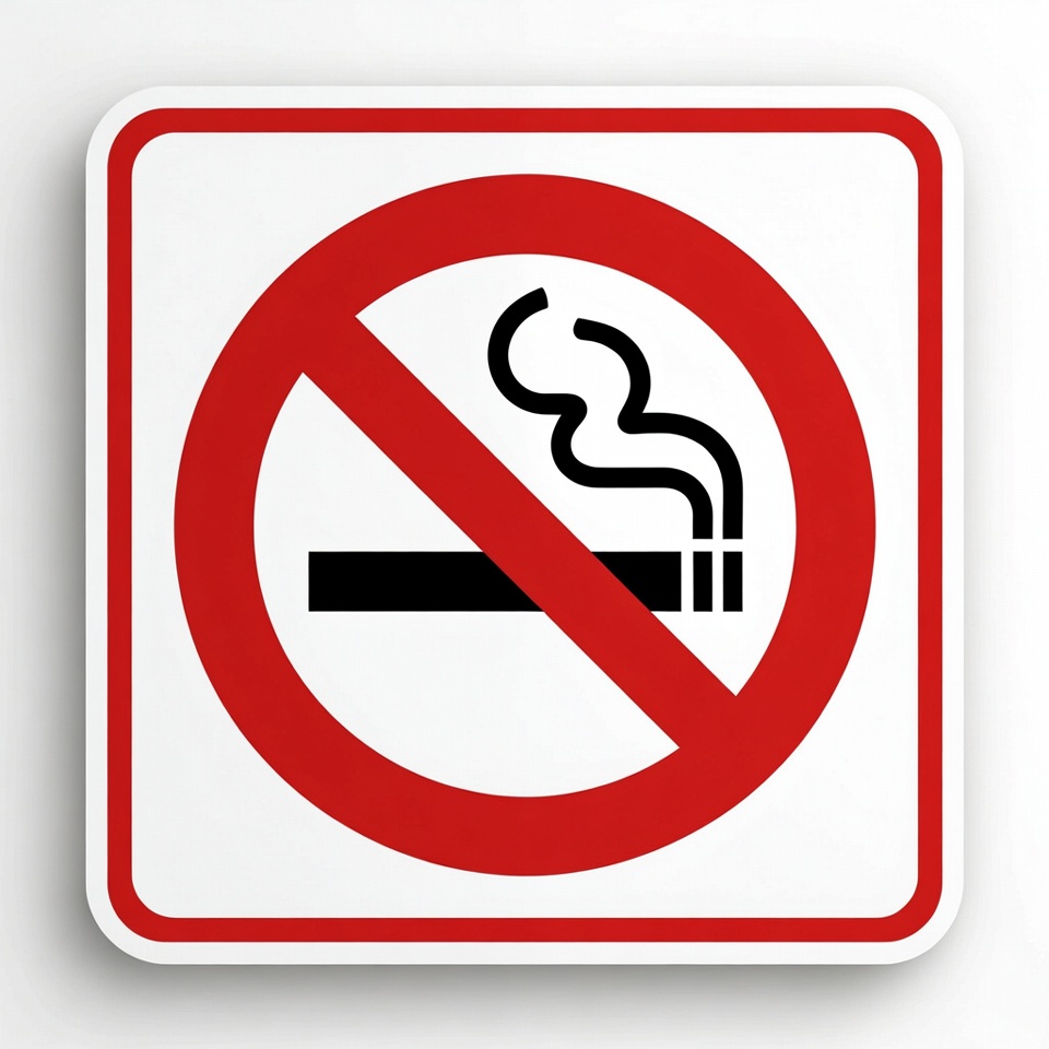 anti-smoking, awareness, cigarette, community, graphic symbol, health warning, indoor, no smoking, outdoor, policy, prohibited, public area, public health, red circle, regulation, rules, safety, sign, signage, smoke