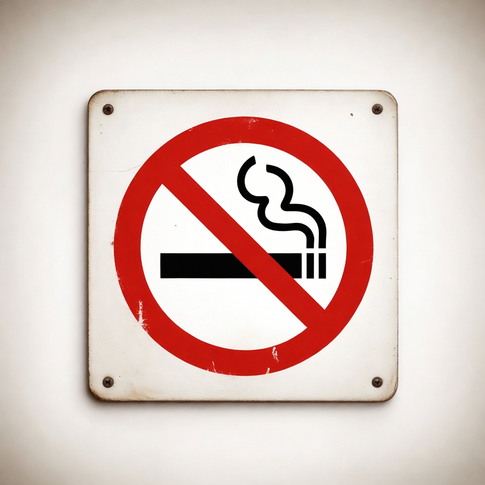 Clear no smoking sign displays a cigarette and smoke image. It emphasizes a smoke-free environment in public spaces or buildings.