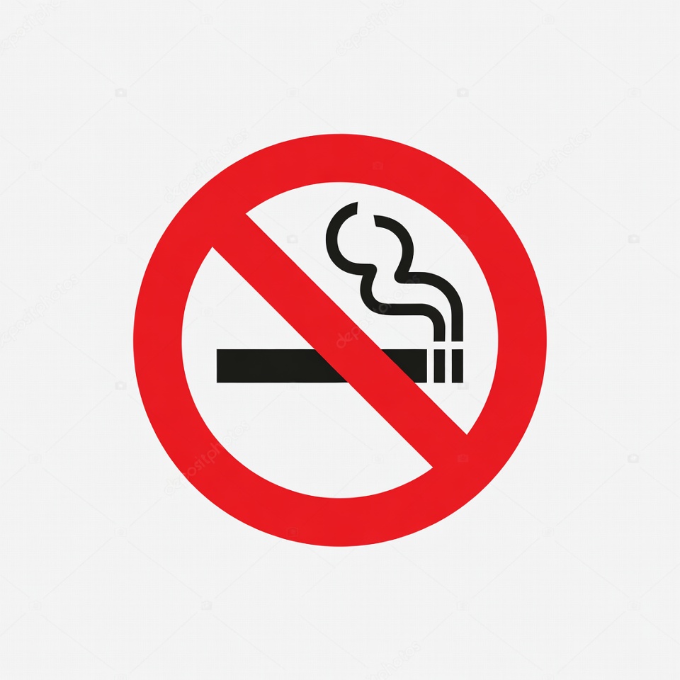 A clear no smoking sign features a cigarette with smoke and a red prohibition circle. This symbol promotes a smoke-free environment.