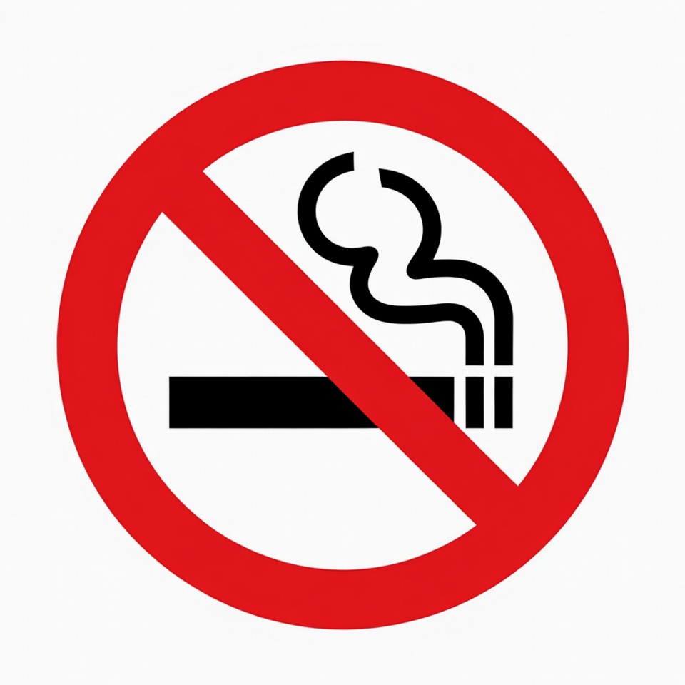 A bold no smoking sign indicates a smoke-free zone. The red circle and diagonal line highlight the prohibition effectively.